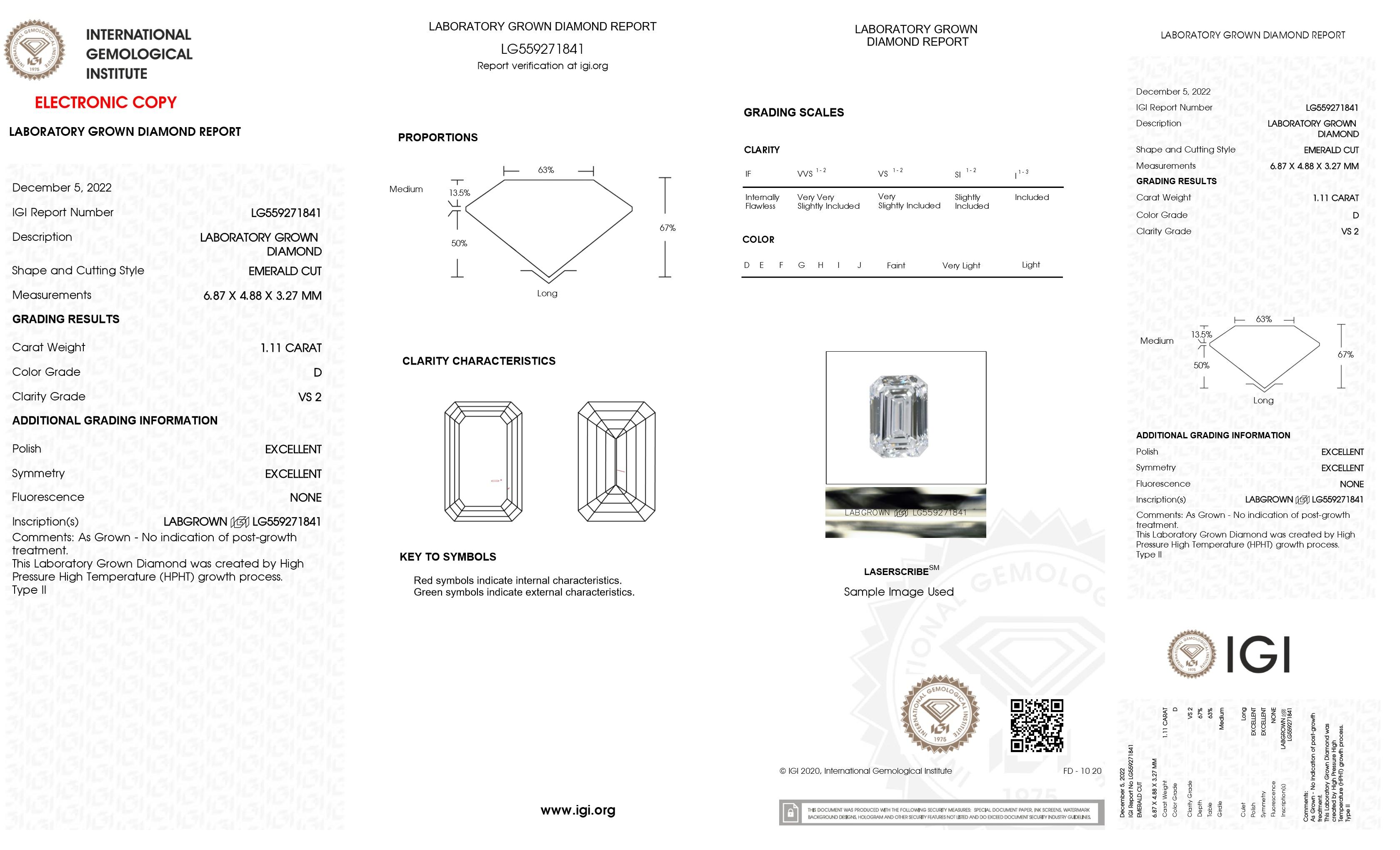 One (1) Emerald Cut Laboratory Grown Diamond