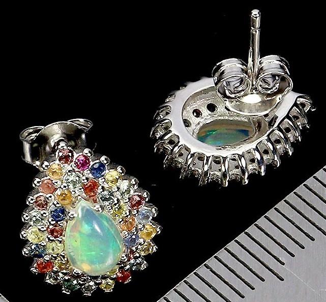 2.00 Carats Natural Opal & Multi-Colored Sapphire Earrings | $1,700 Estimated Retail Value (UGL Cert)