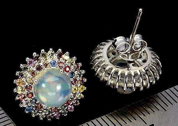 4.00 Carats Natural Opal & Multi-Colored Sapphire Earrings | $1,800 Estimated Retail Value (UGL Cert)