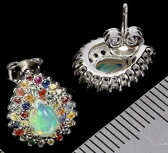 2.00 Carats Natural Opal & Multi-Colored Sapphire Earrings | $1,700 Estimated Retail Value (UGL Cert)