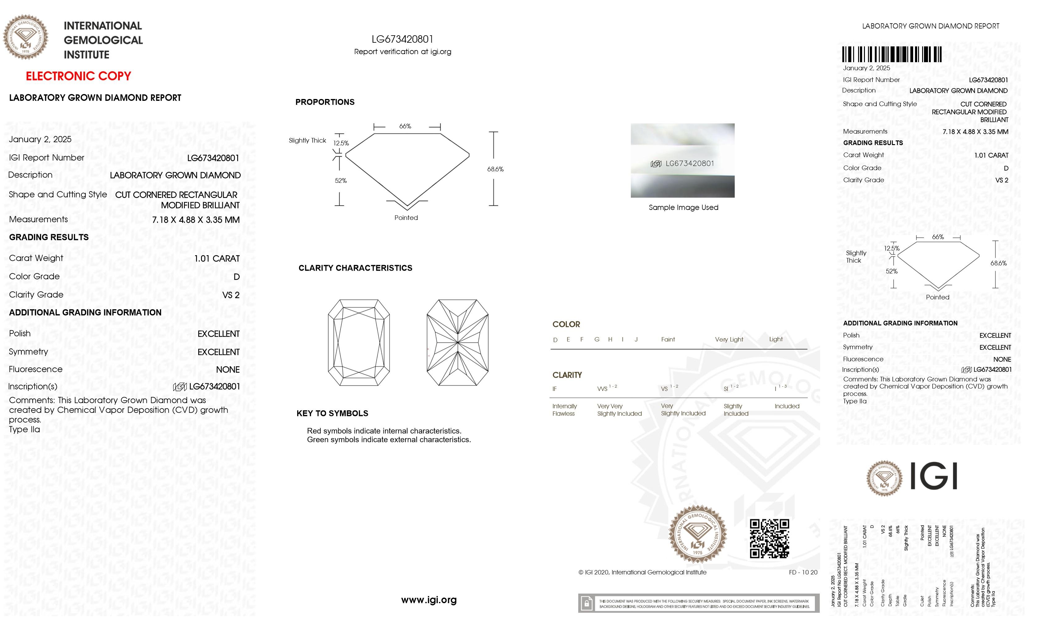 One (1) Radiant Cut Laboratory Grown Diamond