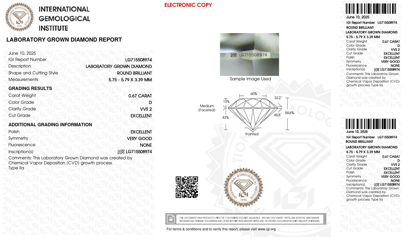 The diamonds feature precision laser inscriptions with the IGI certificate numbers, ensuring authenticity and traceability.