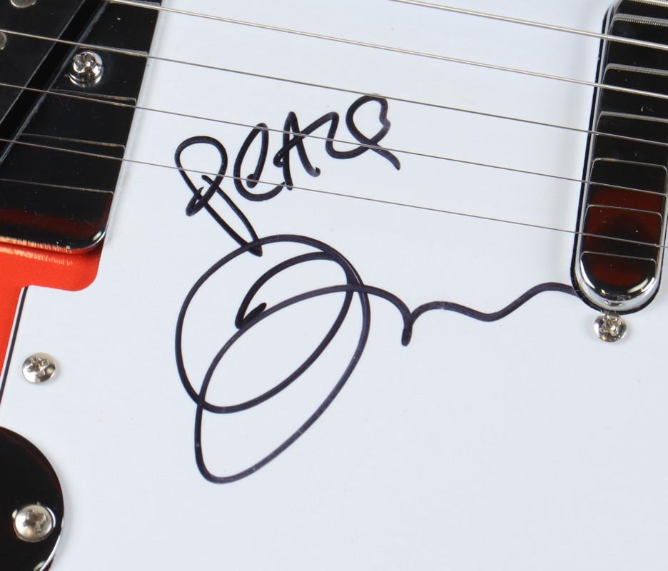 Electric guitar measures 39" has been hand-signed on the pick guard by Tim Reynolds.