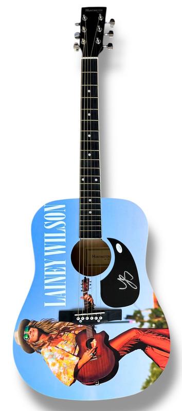 Custom Huntington Acoustic guitar measures approximately 41" in length and has been hand-signed on the pickguard by Lainey Wilson.