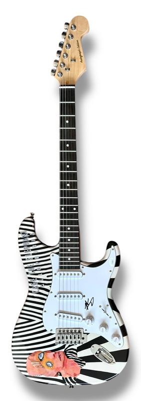 Custom Autograph Edition Stratocaster style electric guitar measures approximately 39" in length and has been hand-signed on the pickguard by Matt Schultz (lead singer).