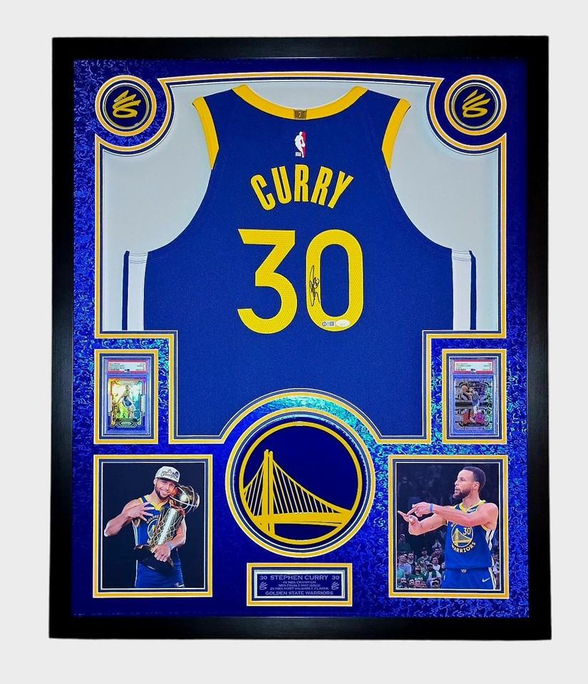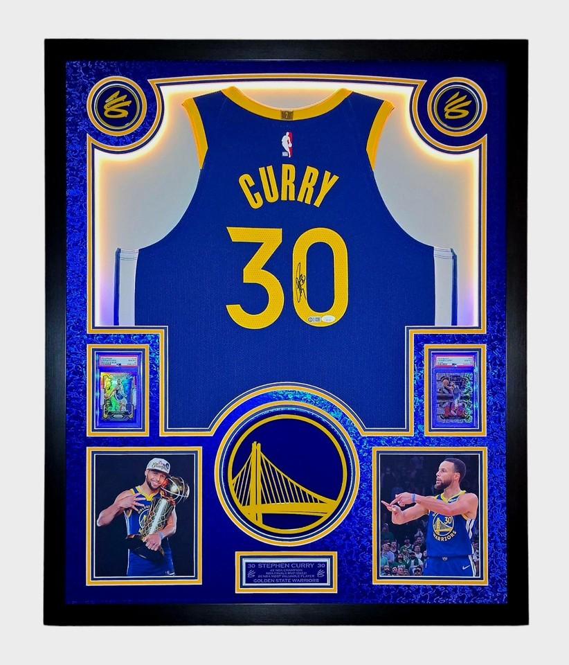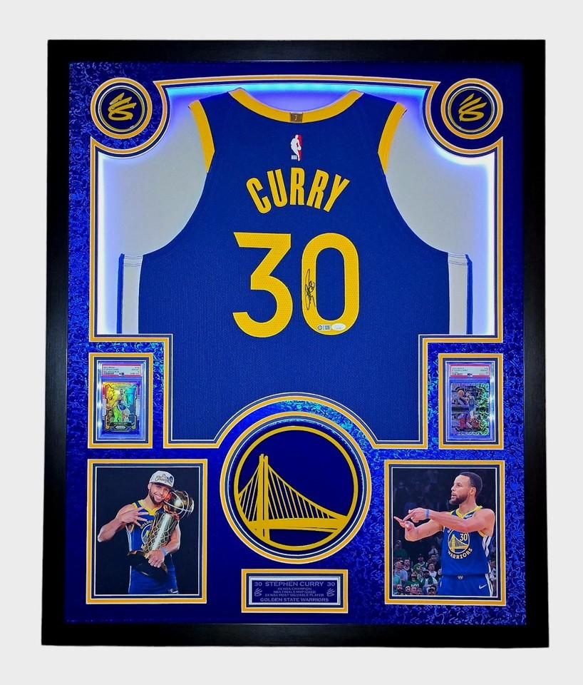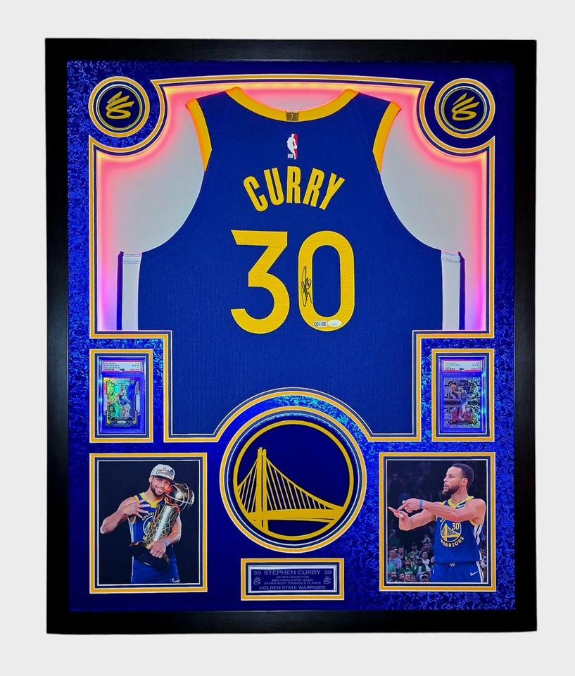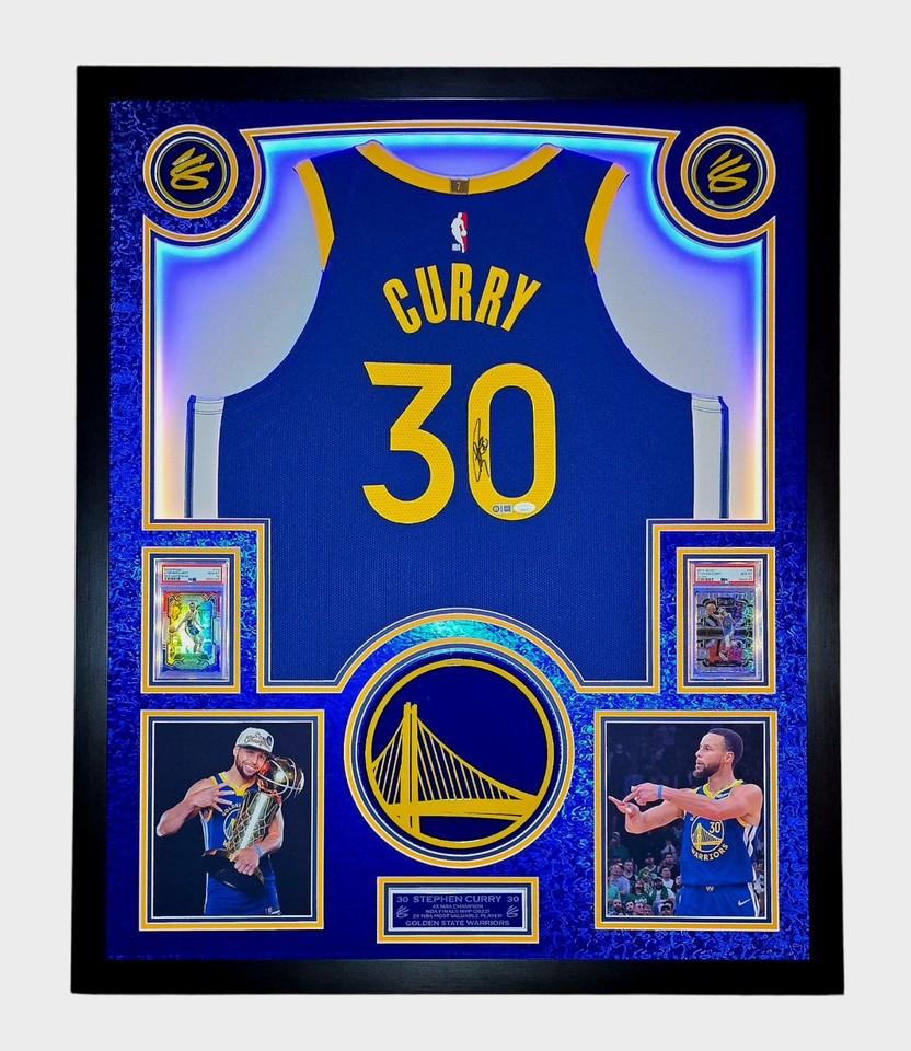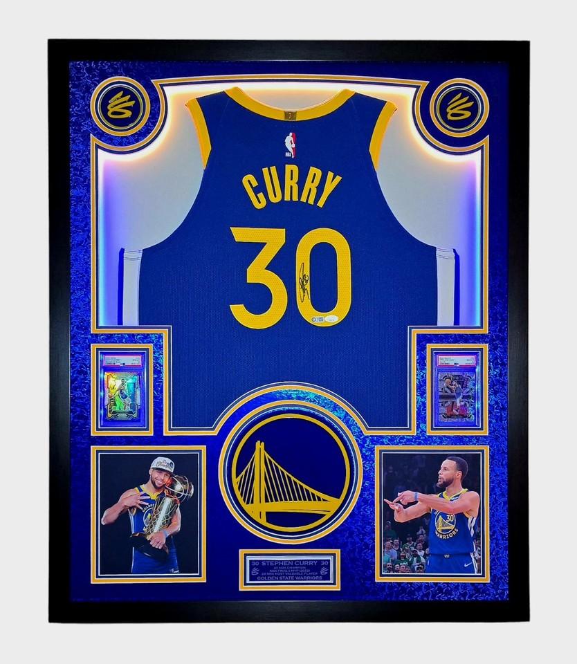 Stephen Curry Signed Warriors Custom Framed Nike Jersey with LED Display & (2) PSA 10 Graded Cards (JSA)