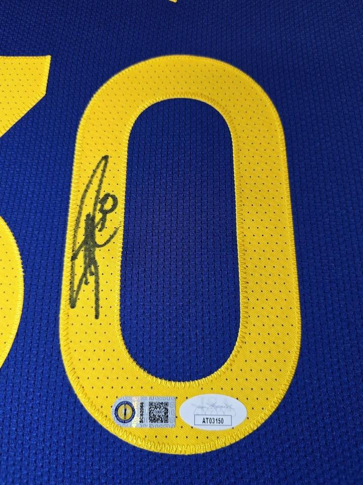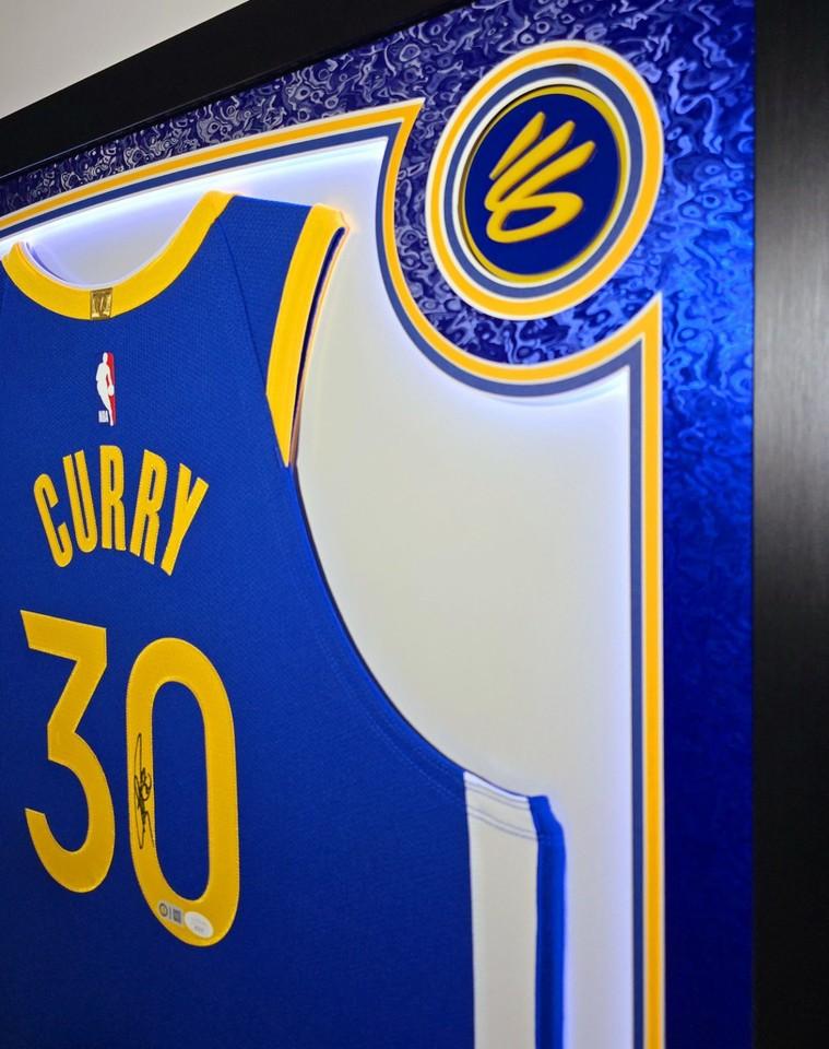 Custom frame measures 42" x 33" in size and features a Nike Vaporknit jersey that has been hand signed by Stephen Curry (Golden State Warriors).
