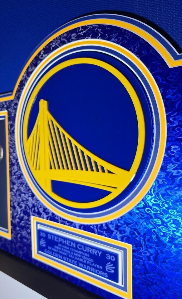 - (2) 3D laser cut Stephen Curry signature logos (top left & right).