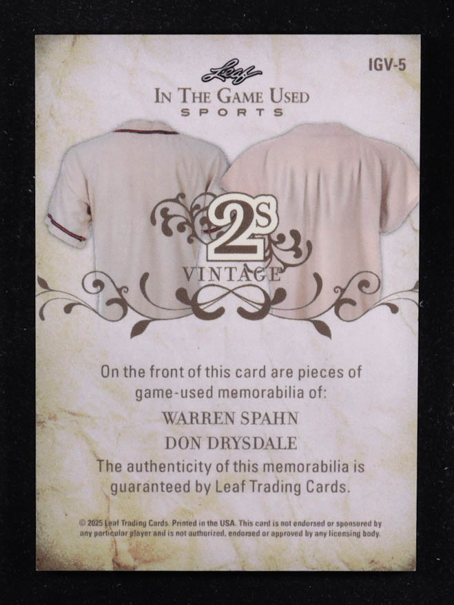 Warren Spahn / Don Drysdale 2025 Leaf ITG Used Sports Vintage 2s Blue Foil JSY #IGV5 #1/10