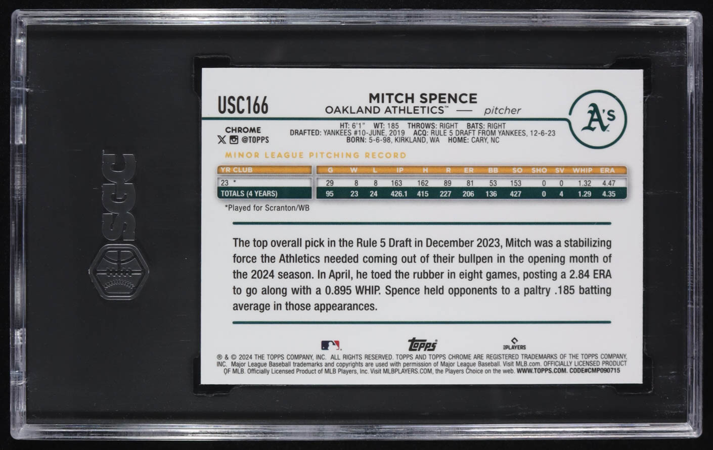 Mitch Spence 2024 Topps Chrome Update Negative Refractors #USC166 RC (SGC 10)