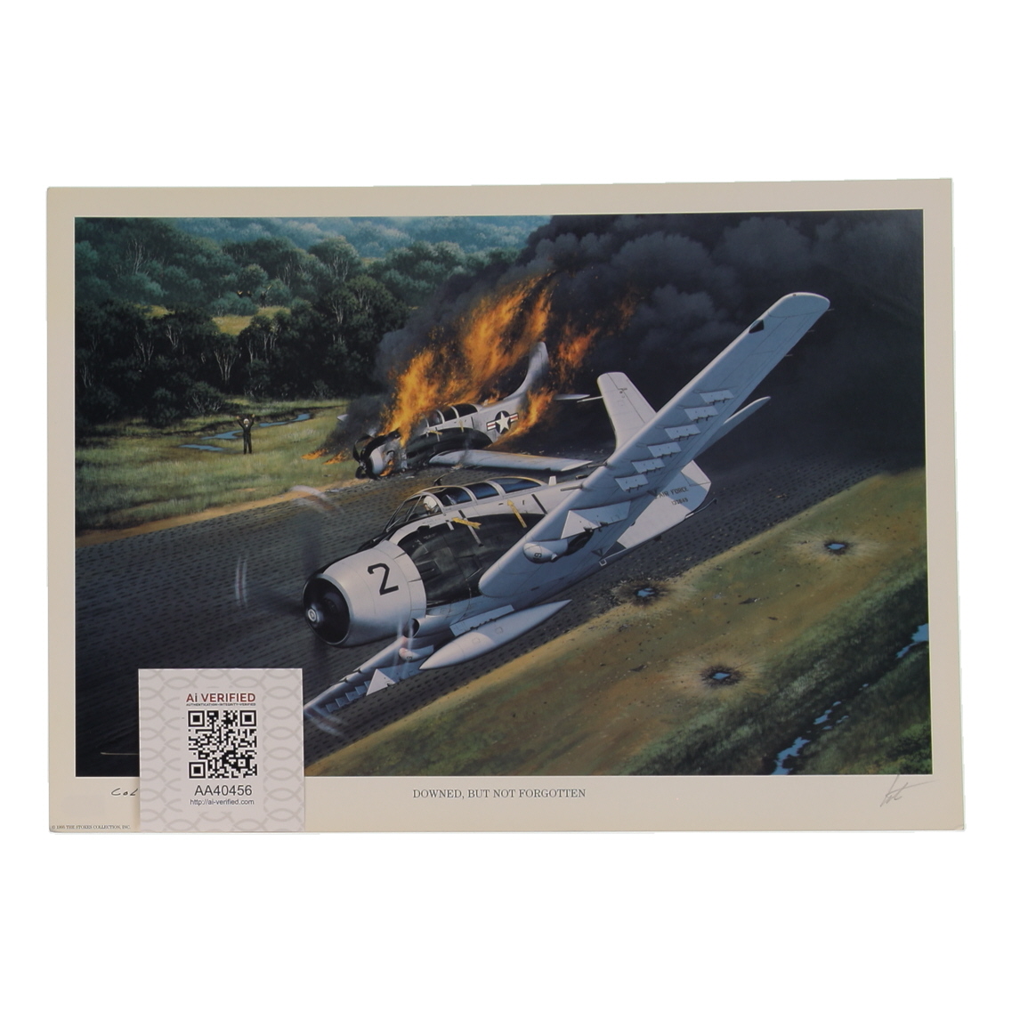 Col. Bernard Fisher Signed Stan Stokes "Downed, But Not Forgotten" Lithograph Inscribed "CMOH" (AIV)