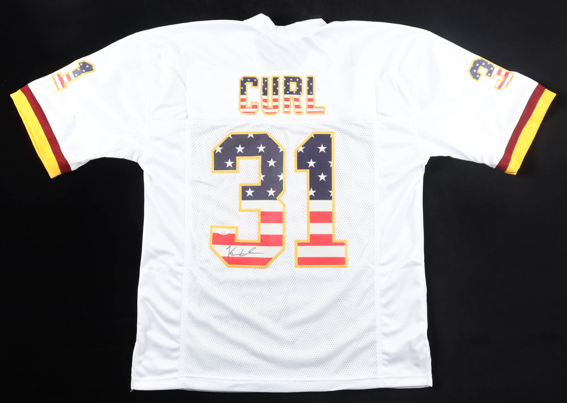Custom jersey with everything sewn on, size XL. Hand-signed by Kamren Curl.