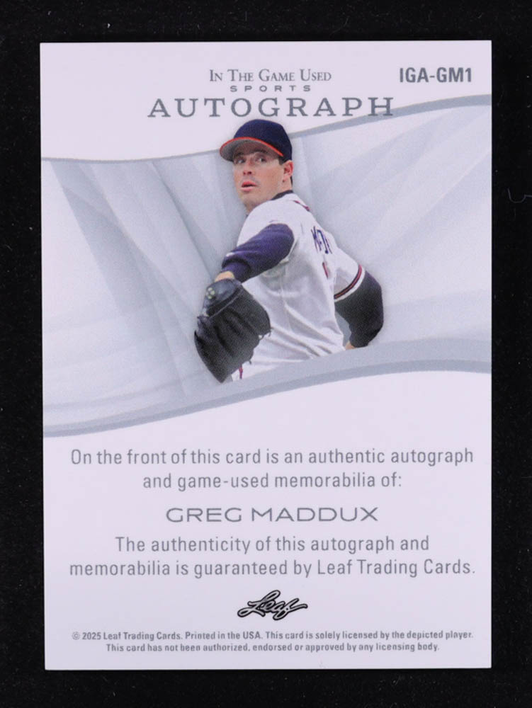 Greg Maddux 2025 Leaf ITG Used Sports Game Used Autograph Memorabilia Navy Blue #IGAGM1 #31/35