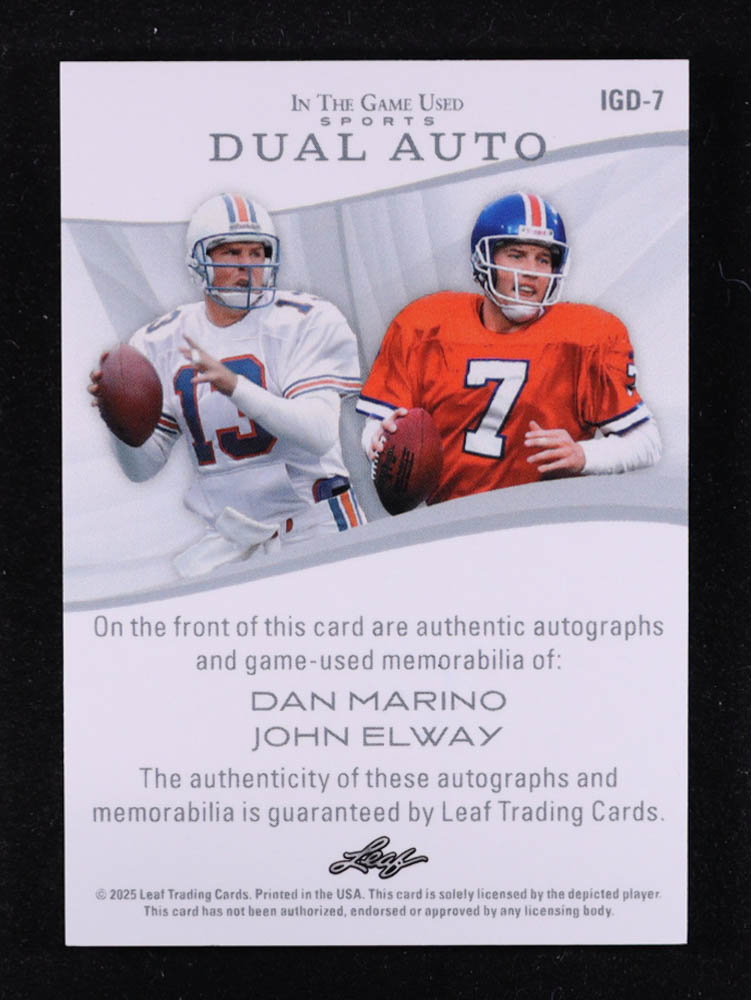 Dan Marino / John Elway 2025 Leaf ITG Used Sports Game Used Dual Autograph Memorabilia Black #IGD7 #3/3