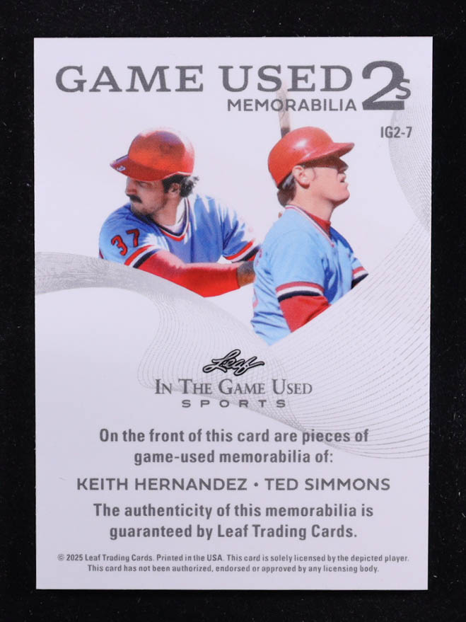 Keith Hernandez / Ted Simmons 2025 Leaf ITG Used Sports Game Used 2s Duos Blue Foil JSY #IG27 #27/45