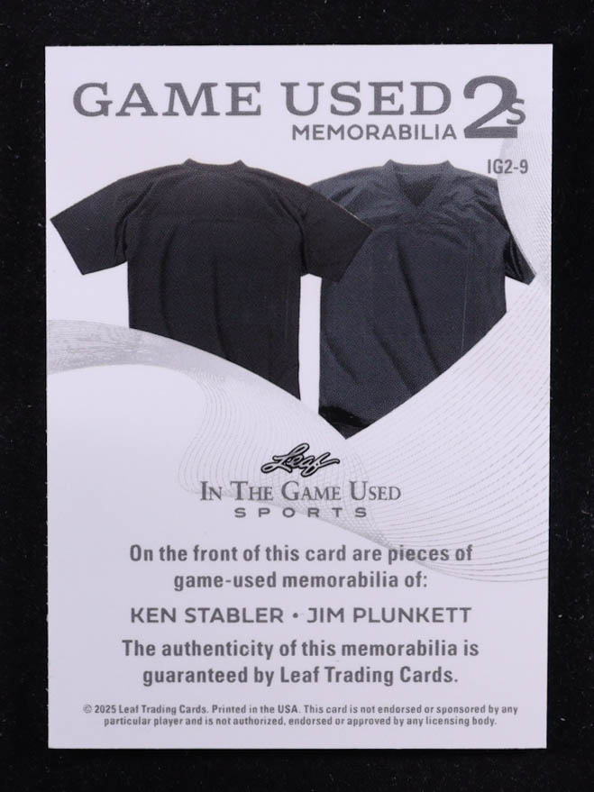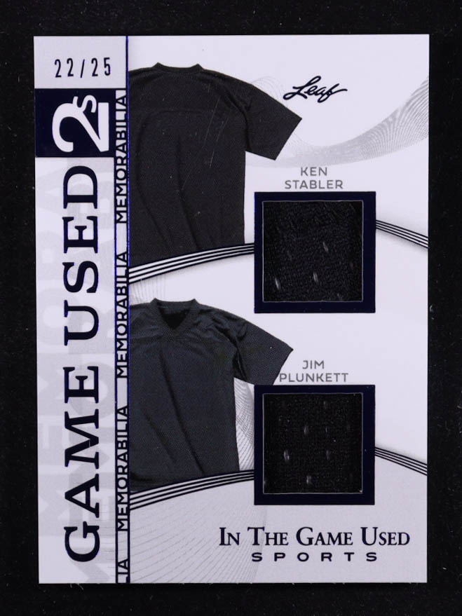 Ken Stabler / Jim Plunkett 2025 Leaf ITG Used Sports Game Used 2s Duo Blue Foil JSY #IG29 #22/25