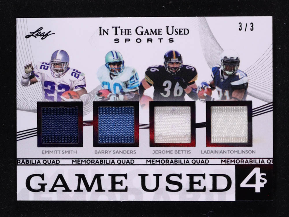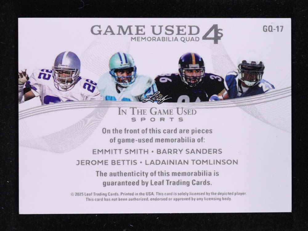Emmitt Smith / Barry Sanders / Jerome Bettis / LaDainian Tomlinson 2025 Leaf ITG Used Sports Game Used 4s Memorabilia Black #GQ17 #3/3