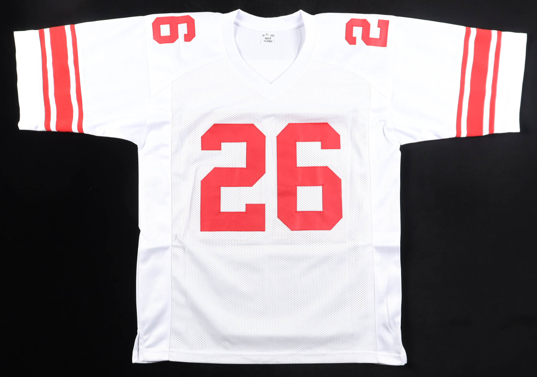 Custom jersey with everything sewn on, size XL. Hand-signed by Devin Singletary.