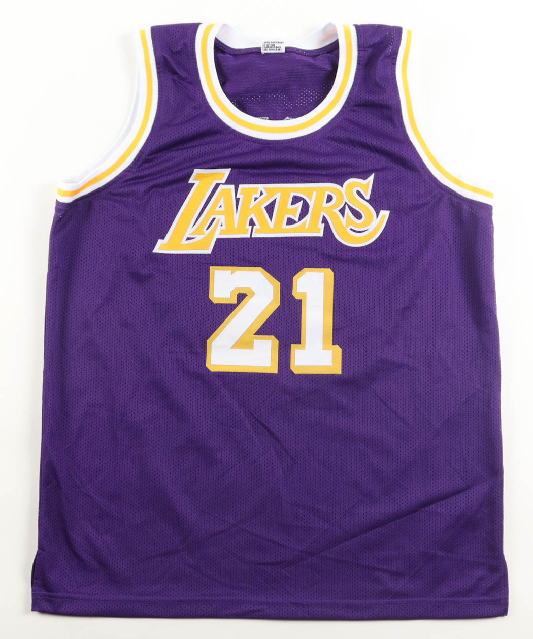 Custom jersey. Everything is sewn on, size XL. Hand-signed by Michael Cooper. Please note, glue is visible through the reverse number and the signature has bled.