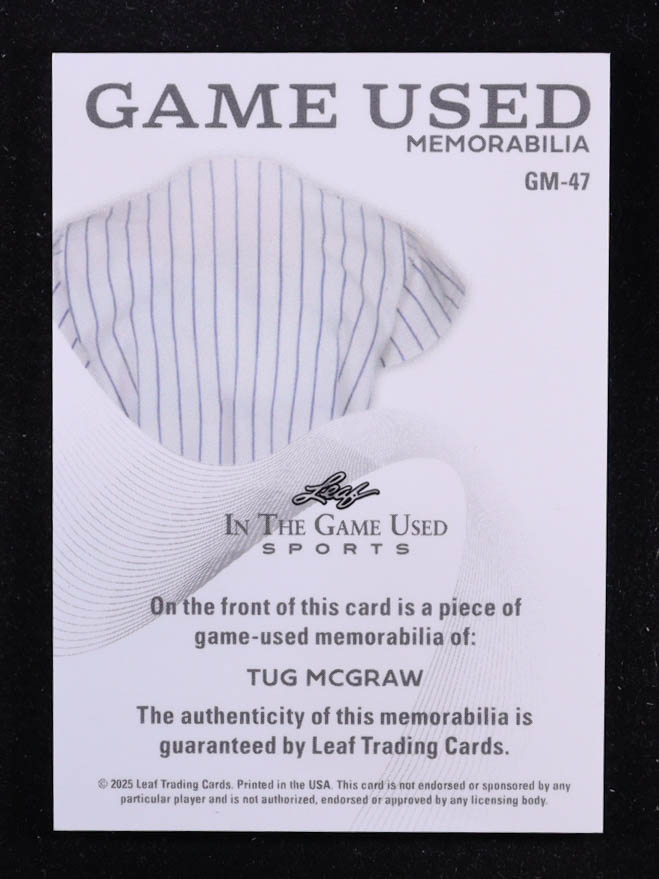 Tug McGraw 2025 Leaf ITG Used Sports Game Used Memorabilia Silver Sparkle Foil JSY #GM47 #23/30