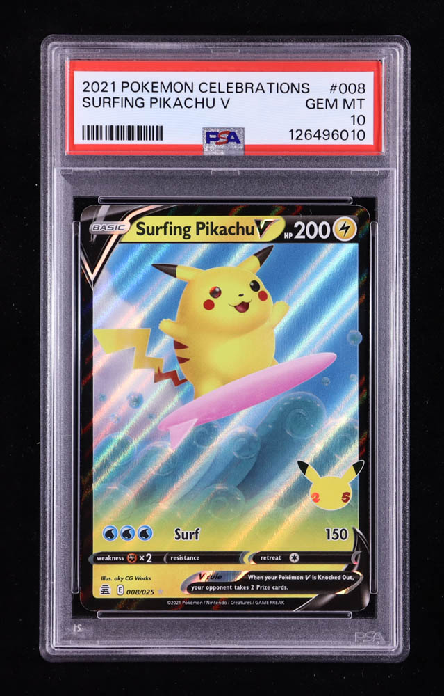 Surfing Pikachu V 2021 Pokemon TCG Sword & Shield Celebrations #008 STAMP (PSA 10)