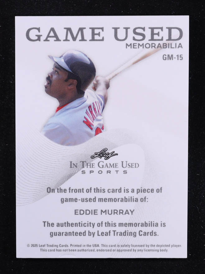 Eddie Murray 2025 Leaf ITG Used Sports Game Used Memorabilia Purple Foil JSY #GM15 #8/8