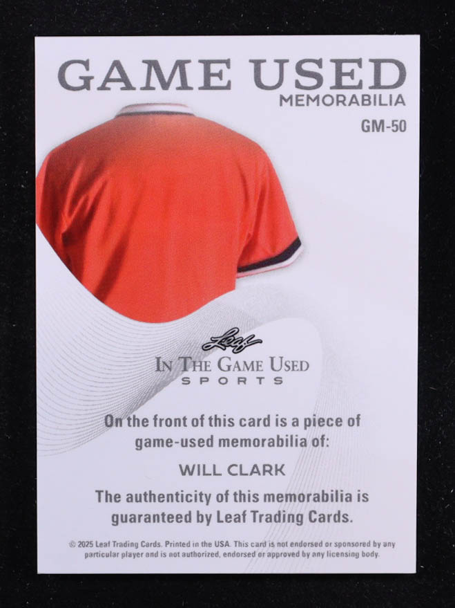 Will Clark 2025 Leaf ITG Used Sports Game Used Memorabilia Blue Foil JSY #GM50 #13/65
