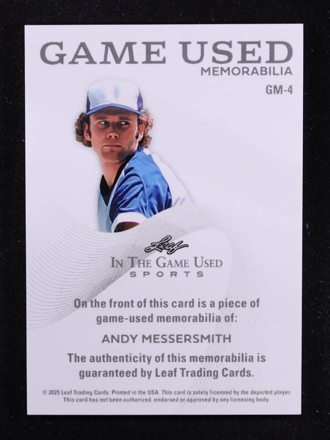Andy Messersmith 2025 Leaf ITG Used Sports Game Used Memorabilia Blue Foil JSY #GM4 #14/65
