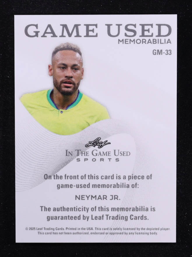 Neymar Junior 2025 Leaf ITG Used Sports Game Used Memorabilia Silver Sparkle Foil JSY #GM33 #5/25