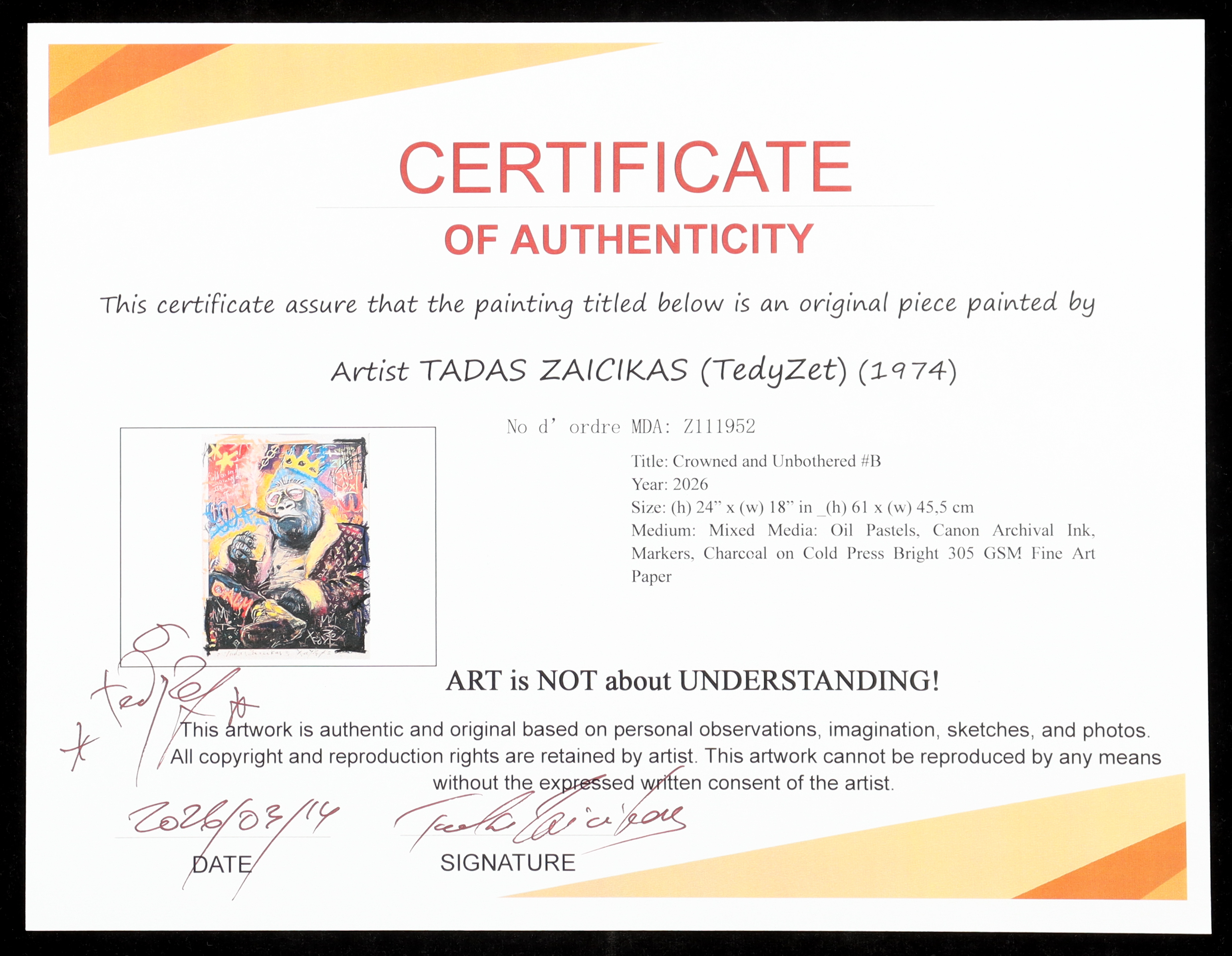 "Crowned and Unbothered #B" 2026 18x24 Original Painting on Fine Art Paper by Tadas Zaicikas | TedyZet (Zaicikas)