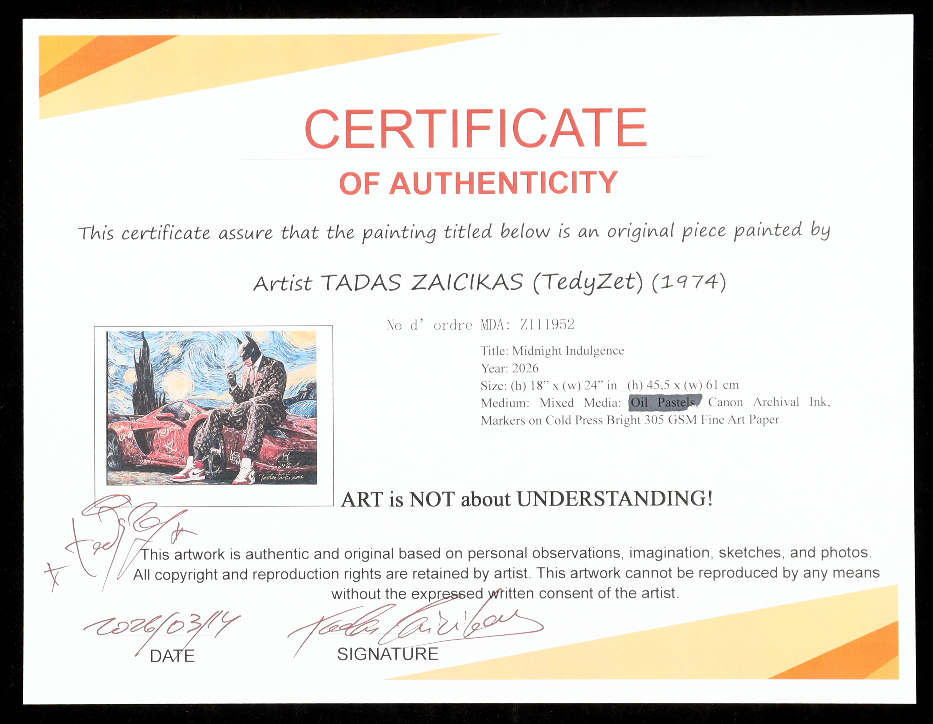 "Midnight Indulgence" 2026 18x24 Original Painting on Fine Art Paper by Tadas Zaicikas | TedyZet (Zaicikas)