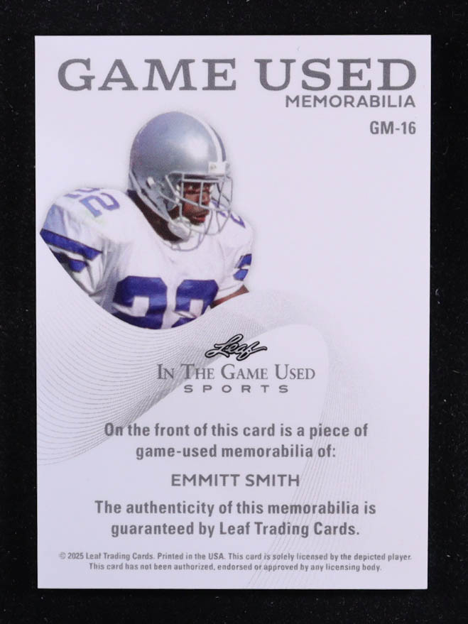 Emmitt Smith 2025 Leaf ITG Used Sports Game Used Memorabilia Silver Sparkle Foil JSY #GM16 #23/25
