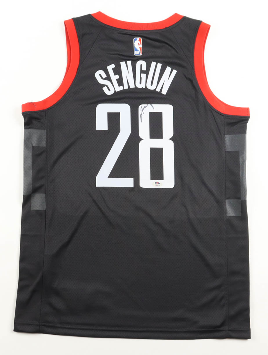 Jordan jersey. Everything is pressed on, size 48. Hand-signed by Alperen Sengun (Houston Rockets).