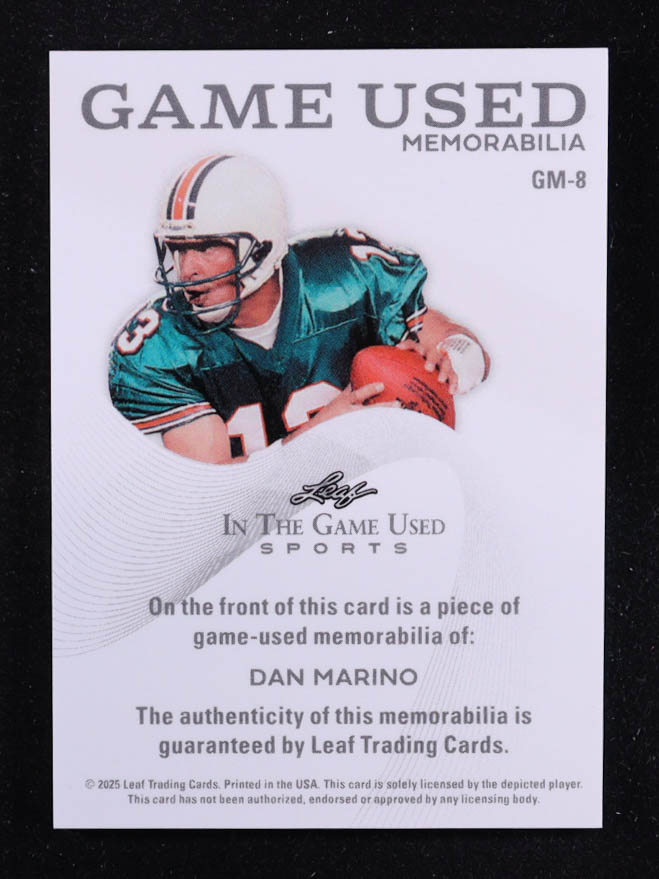 Dan Marino 2025 Leaf ITG Used Sports Game Used Memorabilia Purple Foil JSY #GM8 #2/8