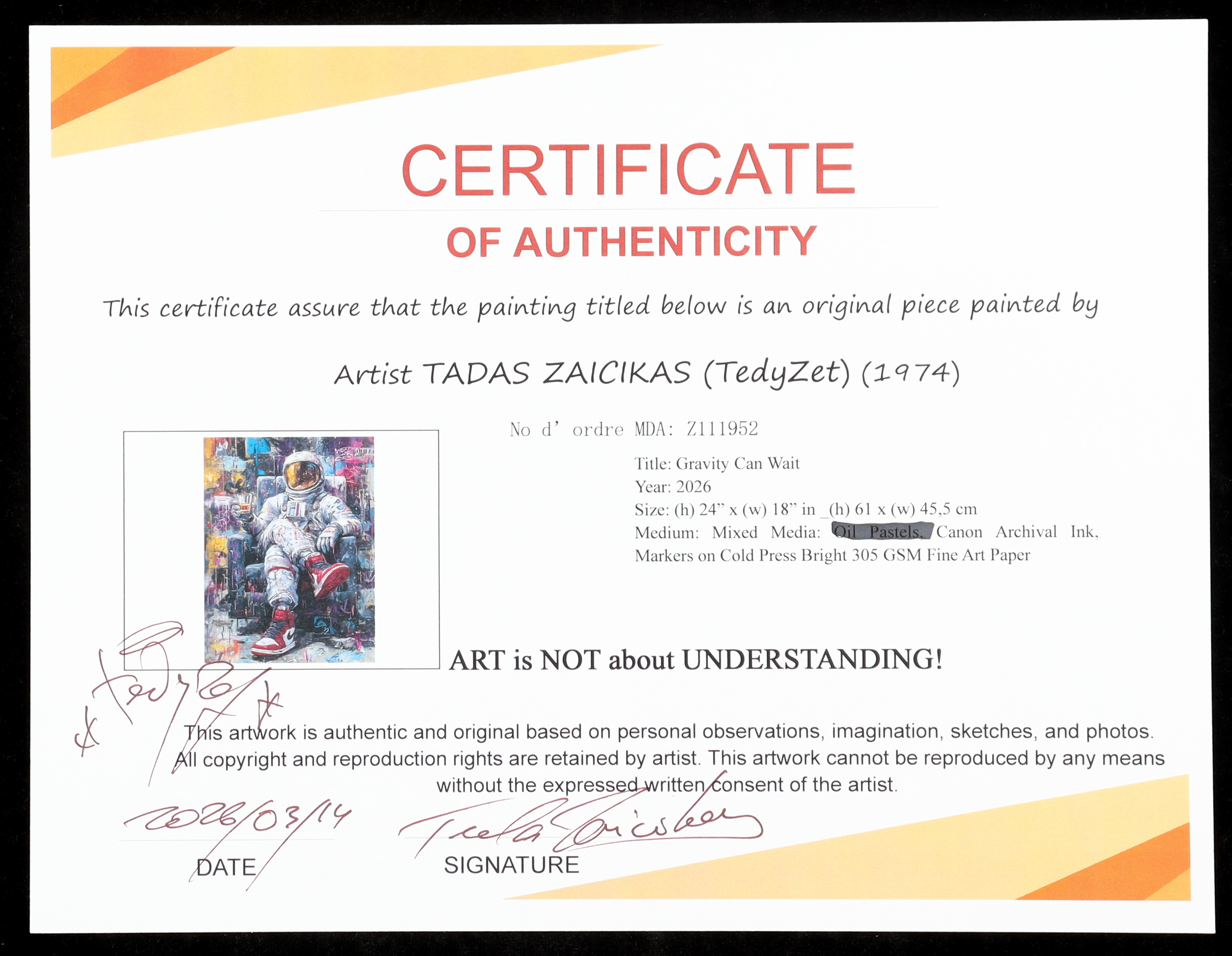 "Gravity Cam Wait" 2026 18x24 Original Painting on Fine Art Paper by Tadas Zaicikas | TedyZet (Zaicikas)