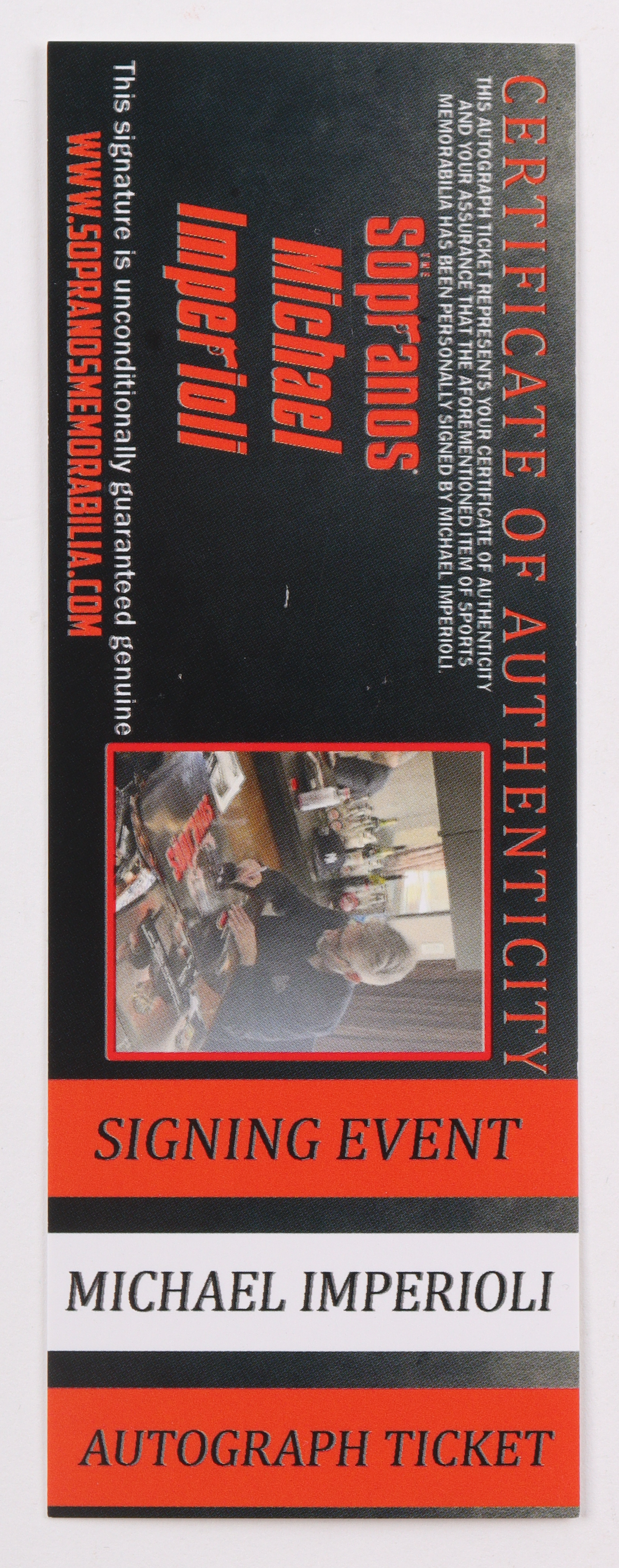 Vinyl figure measures approximately 4" tall and has been hand-signed on the packaging by Michael Imperioli. Please note the denting on the packaging.