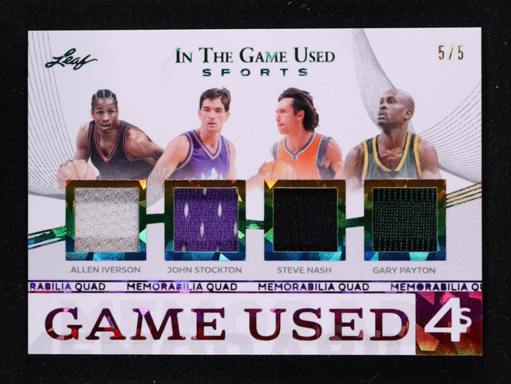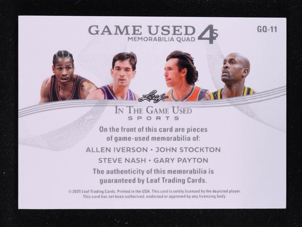 Allen Iverson / John Stockton / Steve Nash / Gary Payton 2025 Leaf ITG Used Sports Game Used 4s Memorabilia Rainbow #GQ11 #5/5