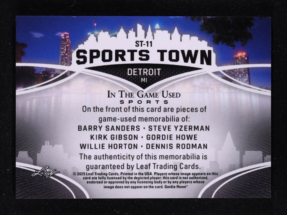 2025 Leaf ITG Used Sports Sports Town Navy Blue #ST11 Barry Sanders / Kirk Gibson / Willie Horton / Steve Yzerman / Gordie Howe / Dennis Rodman #23/35