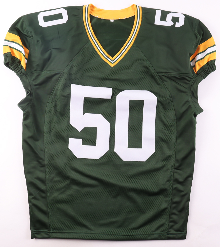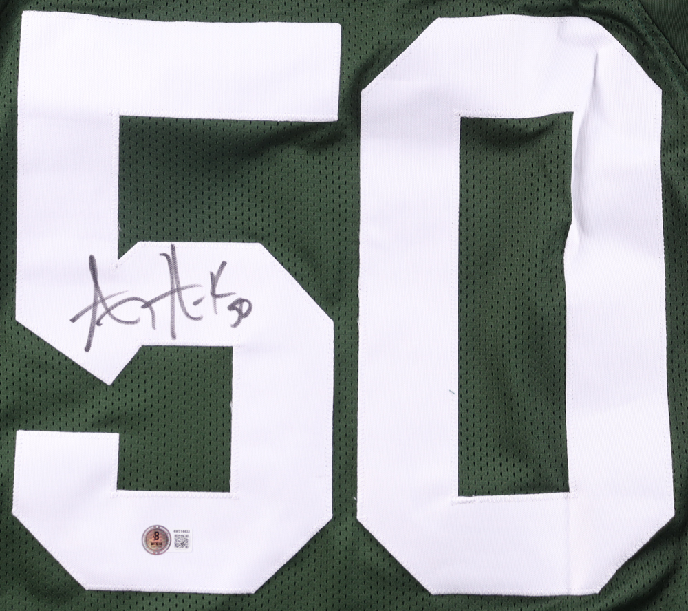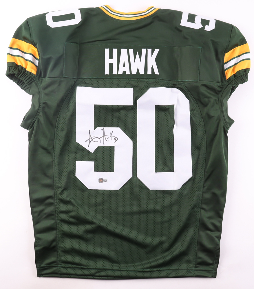 Custom jersey with everything sewn on, size XL. Hand-signed by A. J. Hawk.