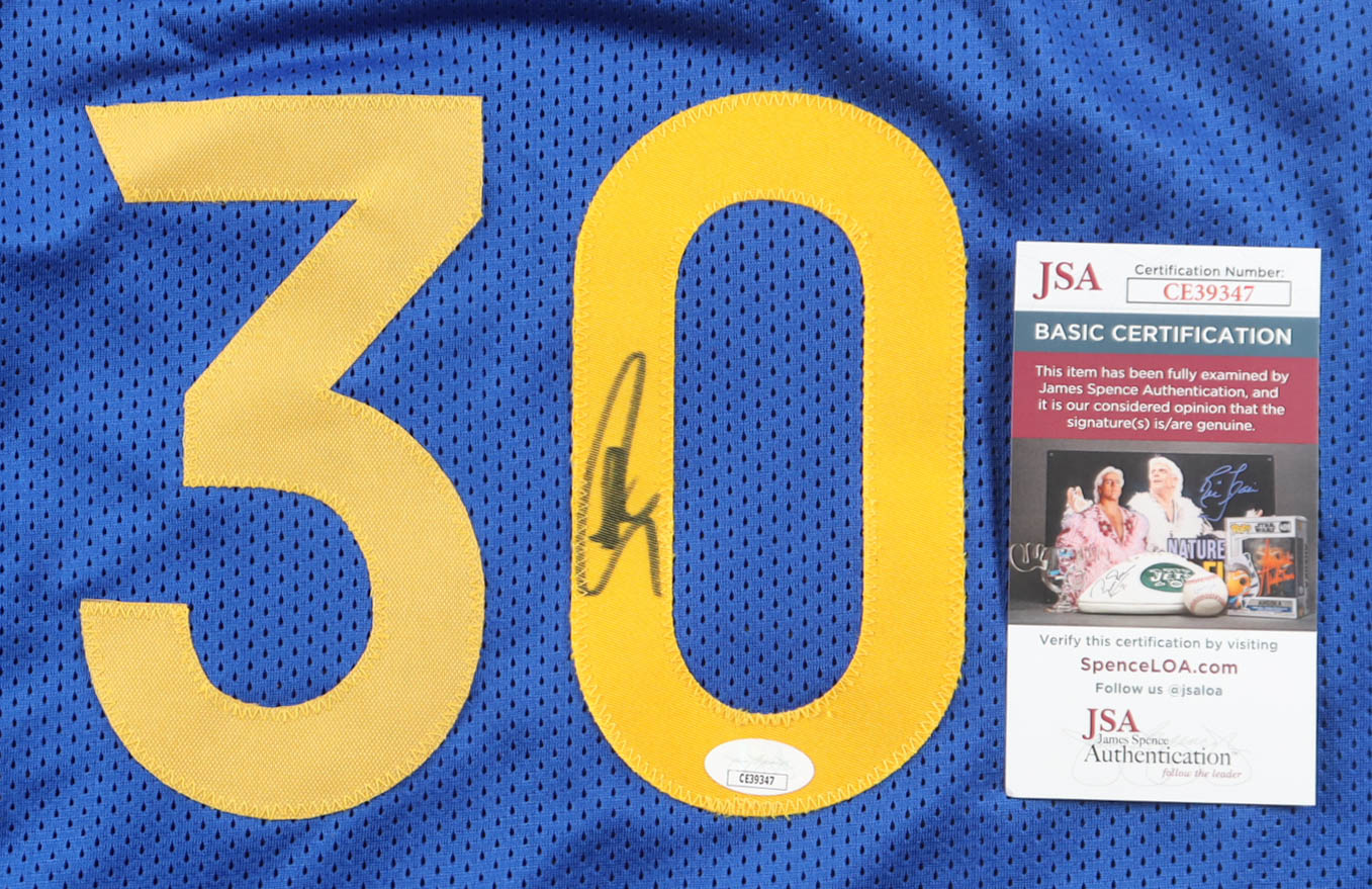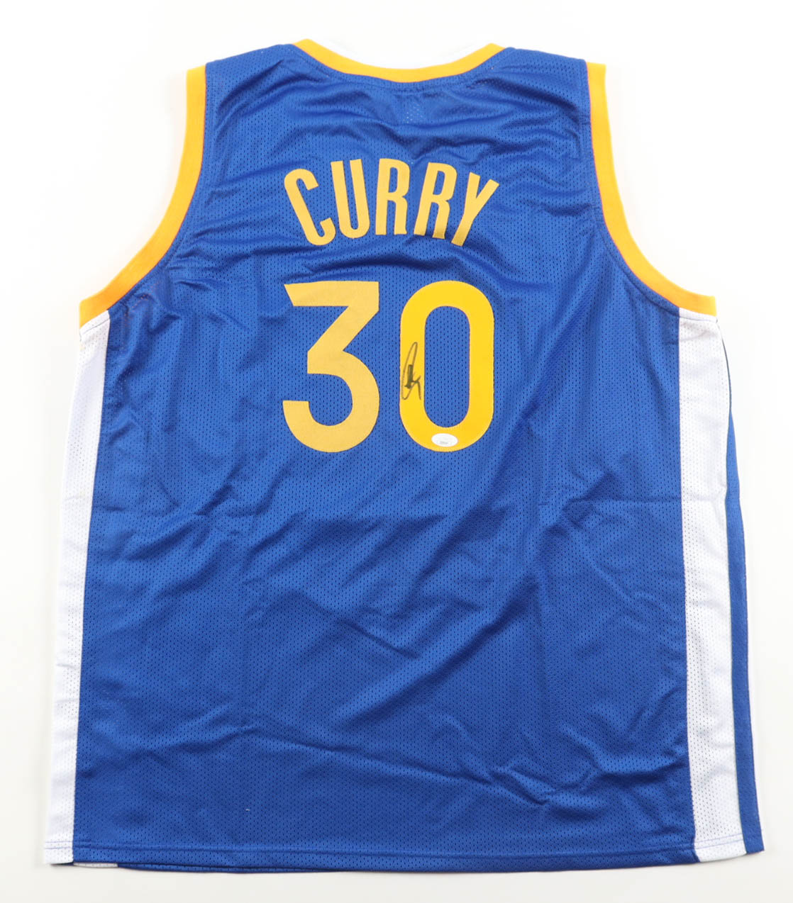 Custom jersey with everything sewn on, size XL. Hand-signed by Steph Curry.