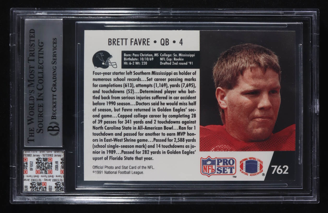Brett Favre 1991 Pro Set #762 RC With Game Used Jersey Swatch (BGS 9)