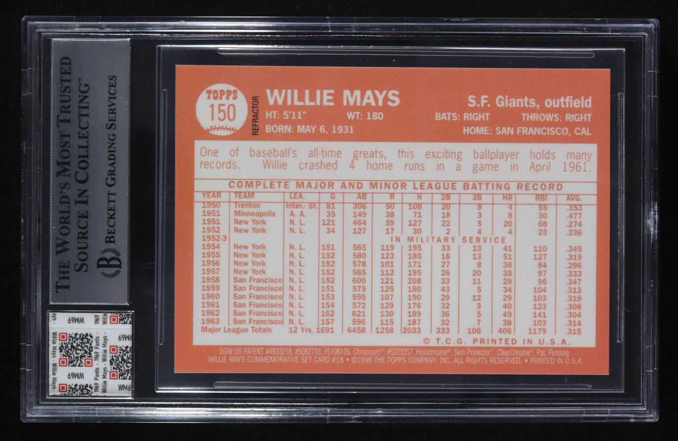 Willie Mays 1997 Topps Finest Refractors #150 With Game Worn Pants Swatch (BGS)