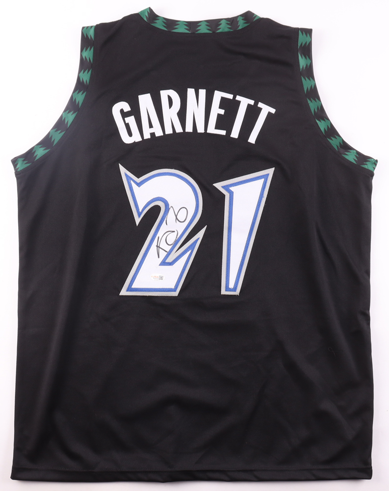 Custom jersey with everything sewn on, size XL. Hand-signed by Kevin Garnett (HOF).