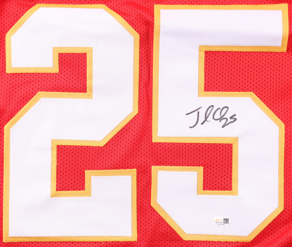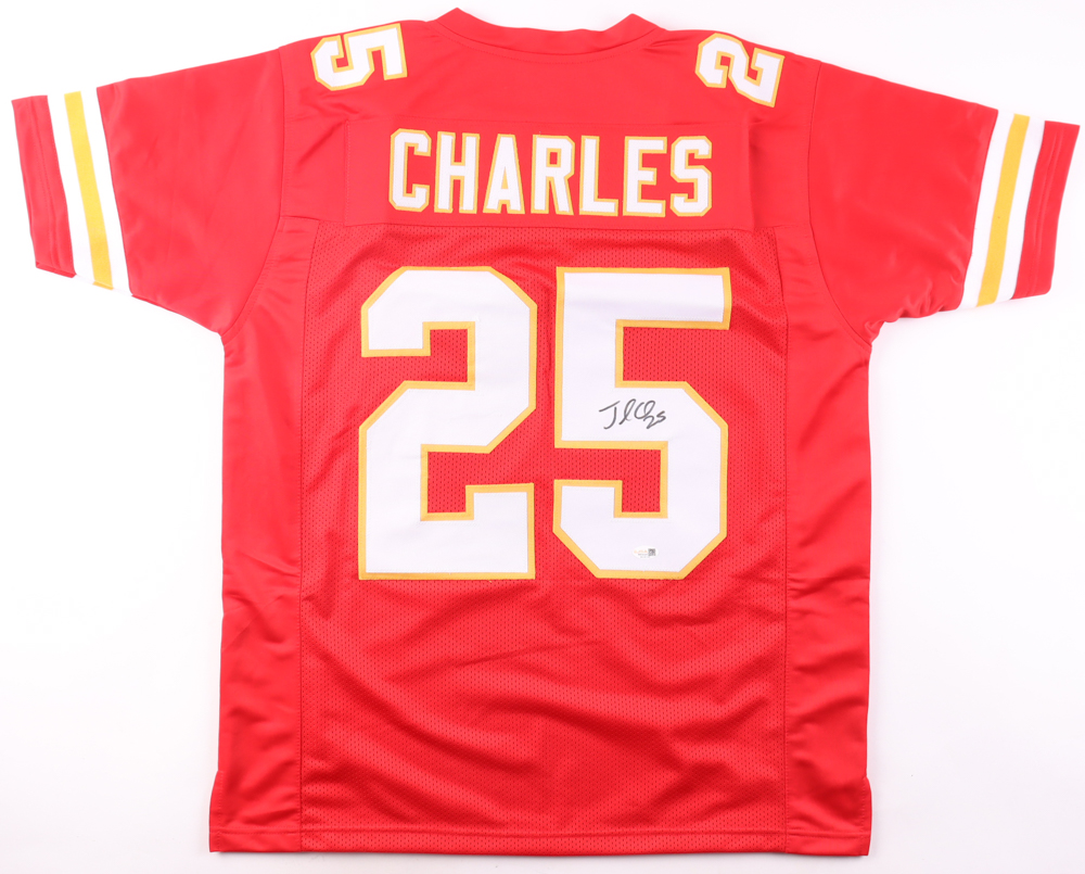 Custom jersey with everything sewn on, size XL. Hand-signed by Jamaal Charles.
