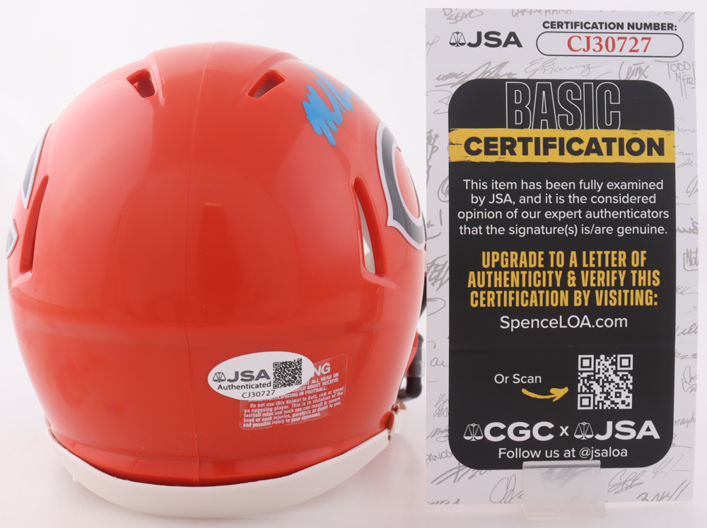 Riddell Chicago Bears Speed mini helmet. Hand-signed and inscribed by Mike Singletary (HOF).