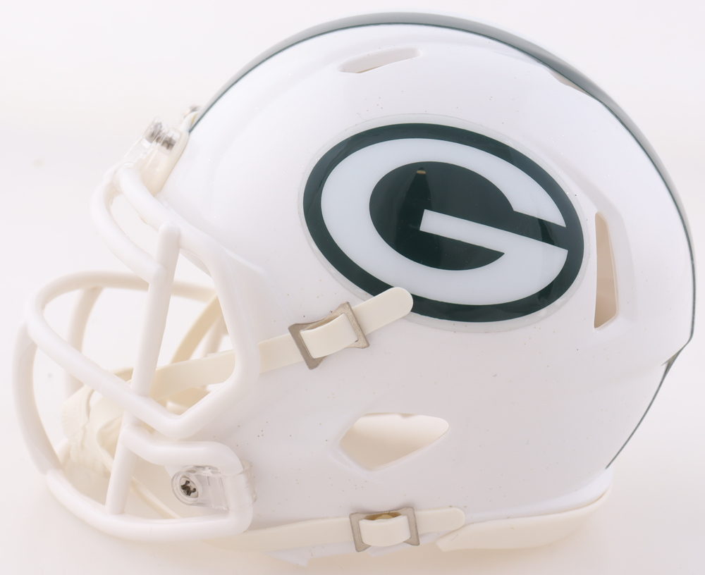 Riddell Green Bay Packers speed mini helmet. Hand-signed by James Jones.