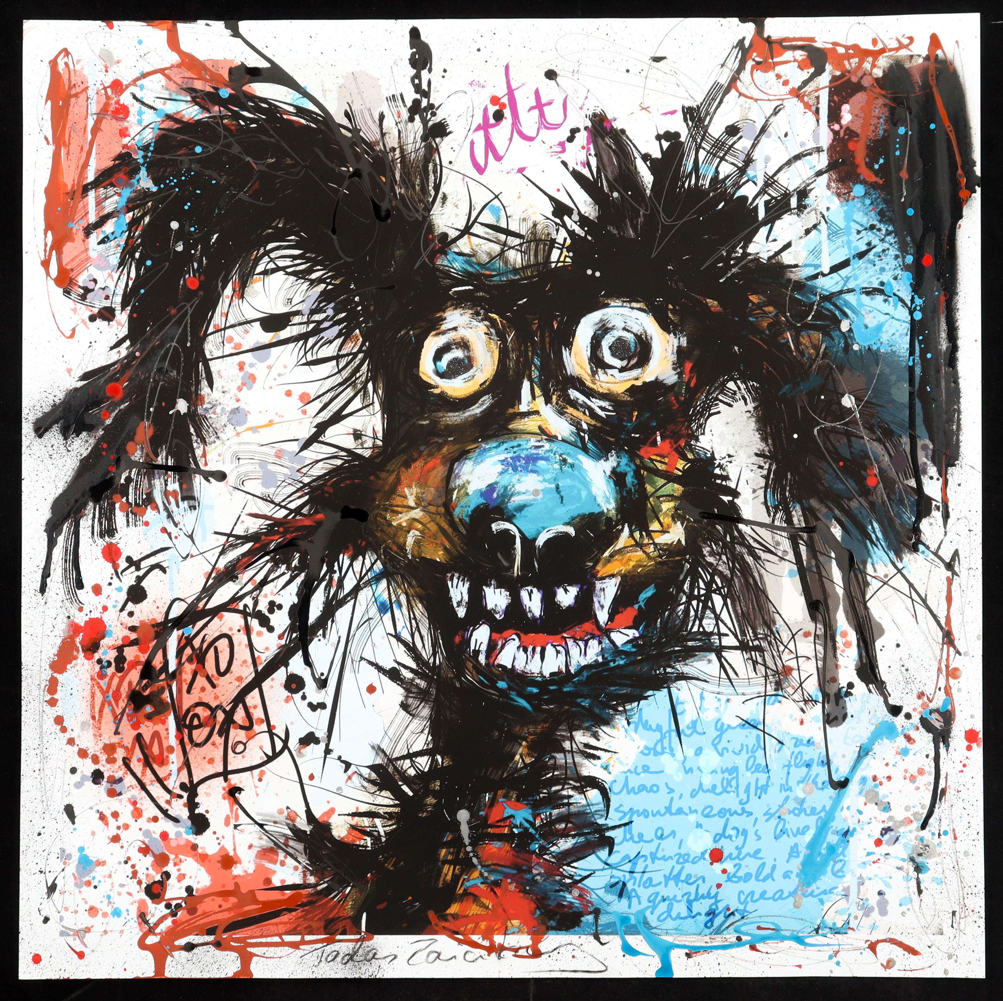 This original painting of acrylic ink, canon ink, charcoal, and glitter on heavyweight matte coated 230 GSM fine art paper. Art print measures 24" x 24" in size and has been hand-signed and titled by the artist, Tadas Zaicikas (TedyZet).