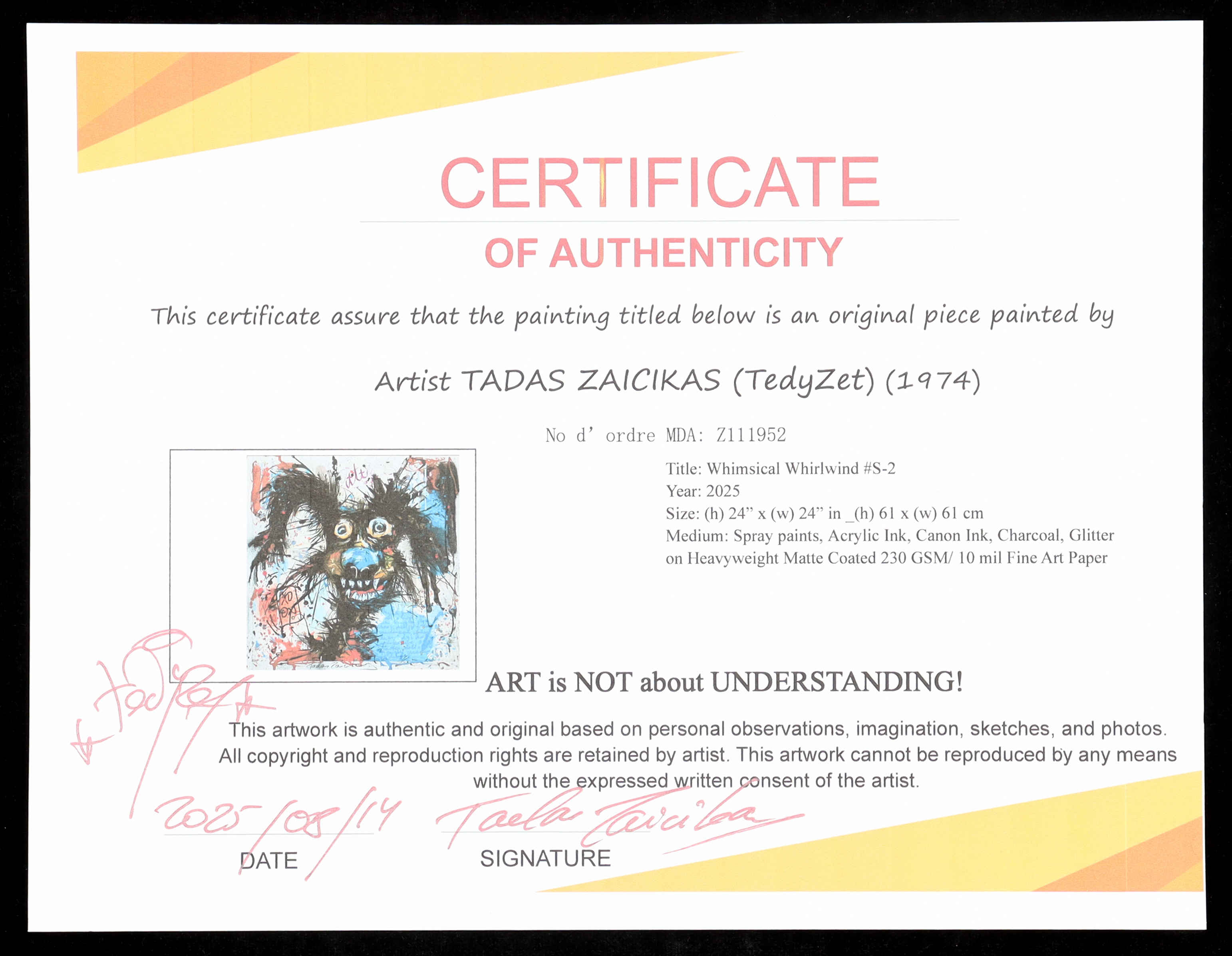 "Whimsical Whirlwind #S-2" 2025 24x24 Original Painting on Fine Art Paper by Tadas Zaicikas | TedyZet (Zaicikas)