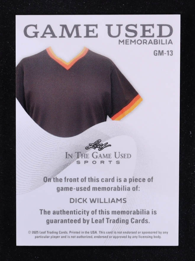 Dick Williams 2025 Leaf ITG Used Sports Game Used Memorabilia Blue Foil JSY #GM13 #10/65