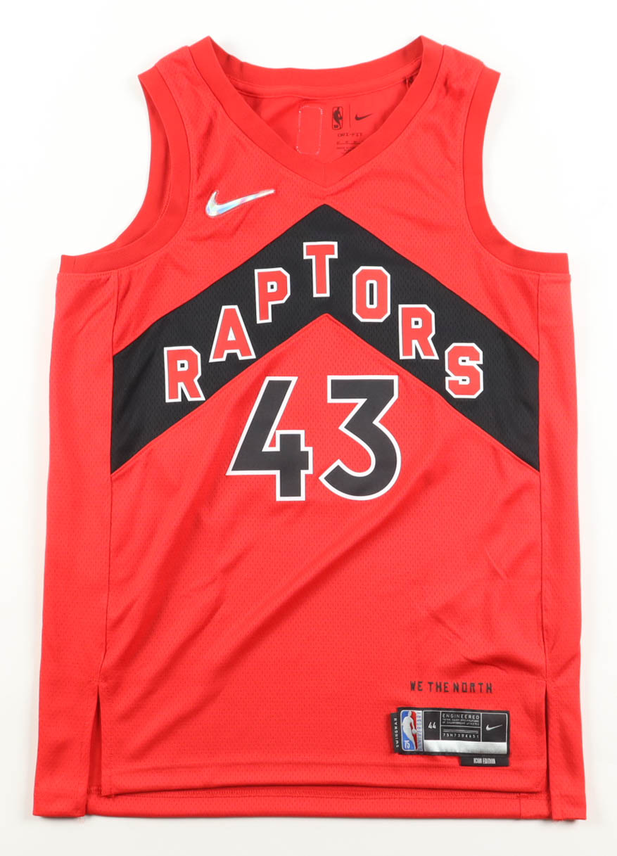 Nike jersey. Everything is pressed on, size 44. Hand-signed by Pascal Siakam (Toronto Raptors).